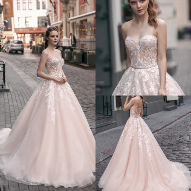 2020 Blush Sweetheart Wedding Dresses Lace Applique Bridal Ball